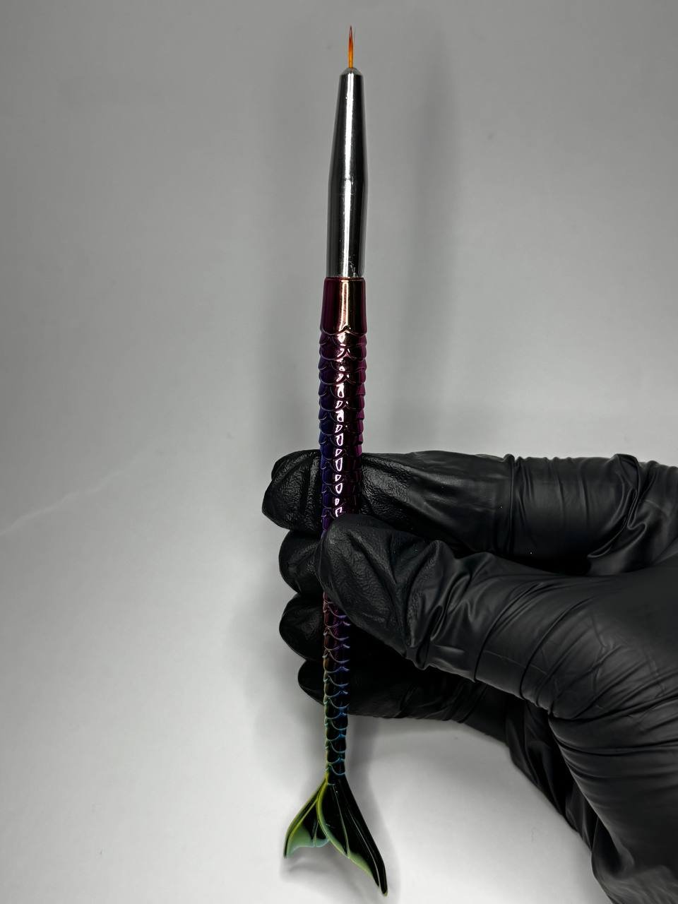 Pensula French Tip „Sirenă” este un instrument profesional, special creat pentru realizarea manichiurilor de tip french sau detalii precise pe unghii. Are peri sintetici, naturali de calitate, cu vârf subțire și bine definit, care permite aplicarea uniformă și controlată a gelului sau acrylului. Designul ergonomic al mânerului oferă confort și precizie în timpul utilizării, facilitând trasarea liniei perfecte și realizarea detaliilor fine. Ideală pentru tehnicienii care doresc rezultate profesioniste și un finish neted în fiecare manichiură.